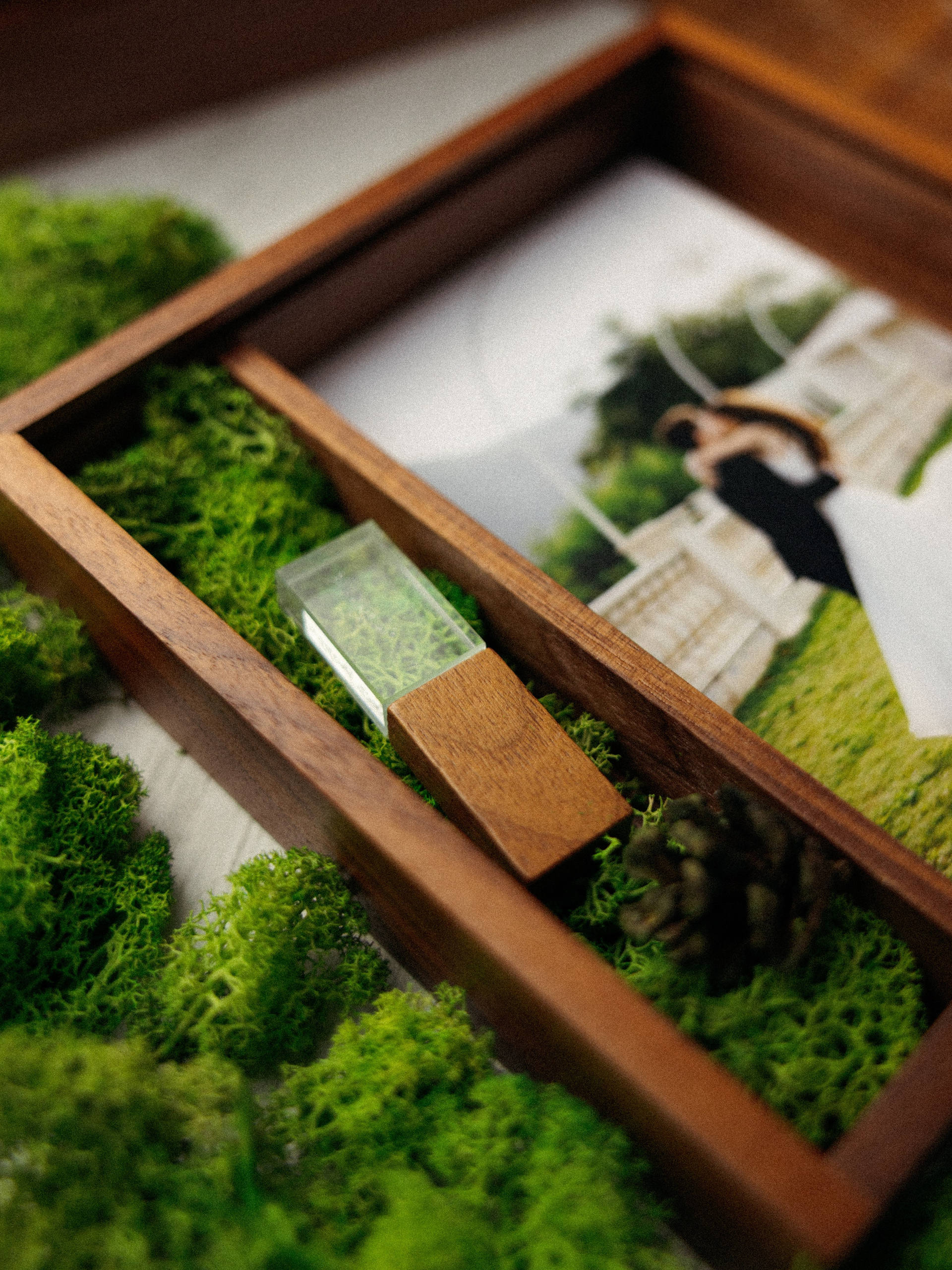 În interior veți găsi un stick USB din cristal, care conține toate fotografiile editate.